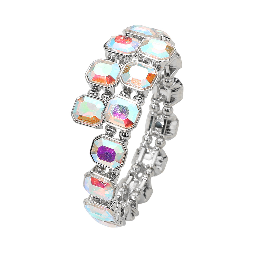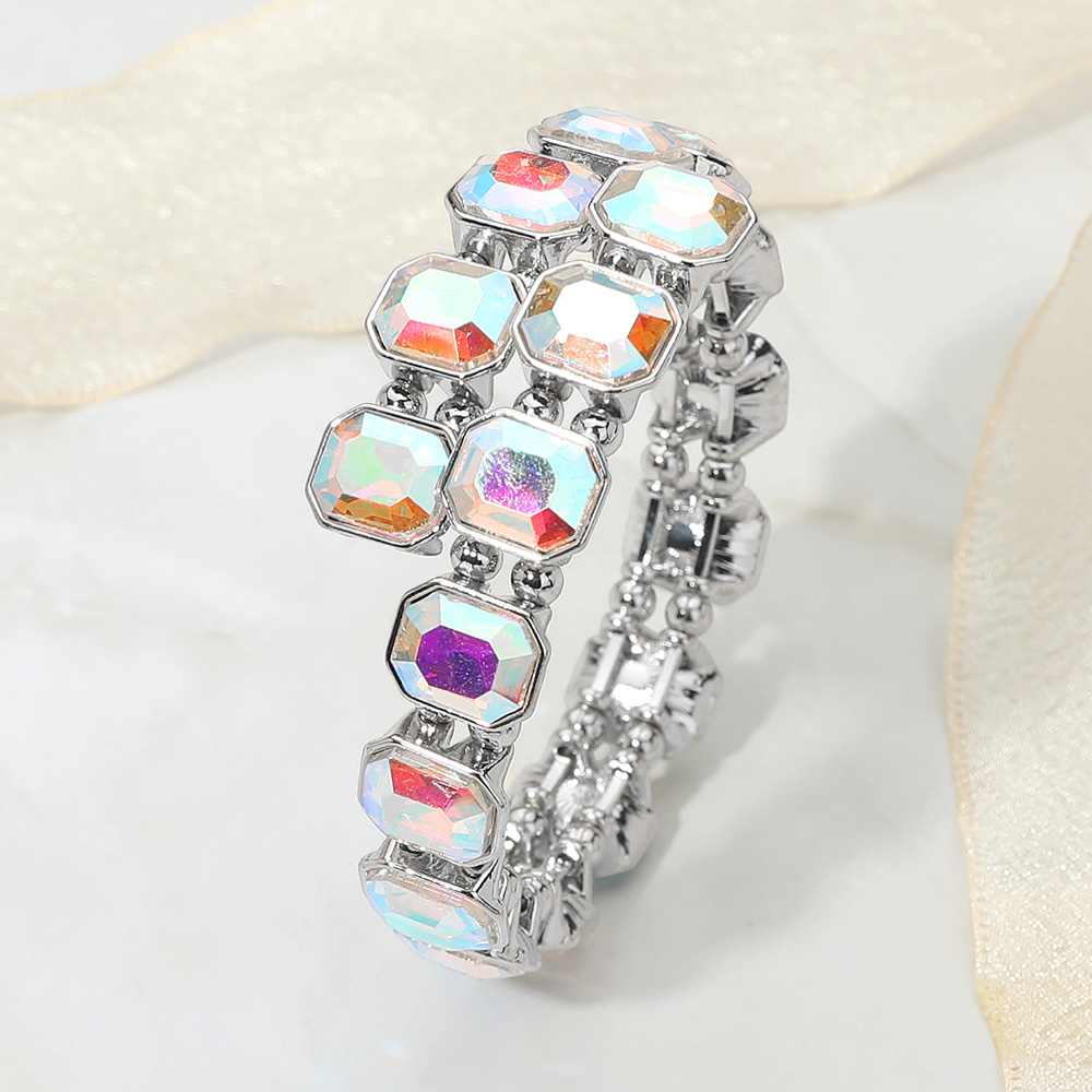 Rectangle Stone Cluster Link Adjustable Evening Bracelet Rectangle Stone Cluster Link Adjustable Evening Bracelet Rectangle Stone Cluster Link Adjustable Evening Bracelet