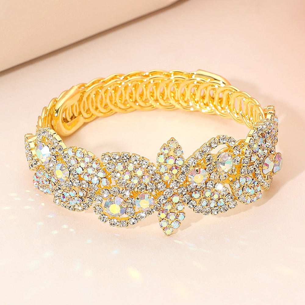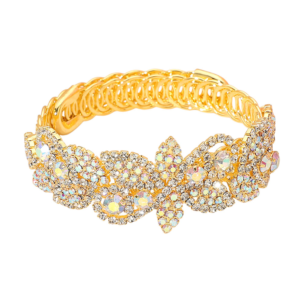 Rhinestone Paved Floral Leaf Adjustable Evening Bracelet Rhinestone Paved Floral Leaf Adjustable Evening Bracelet Rhinestone Paved Floral Leaf Adjustable Evening Bracelet