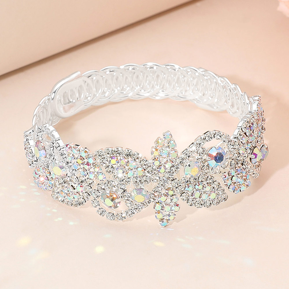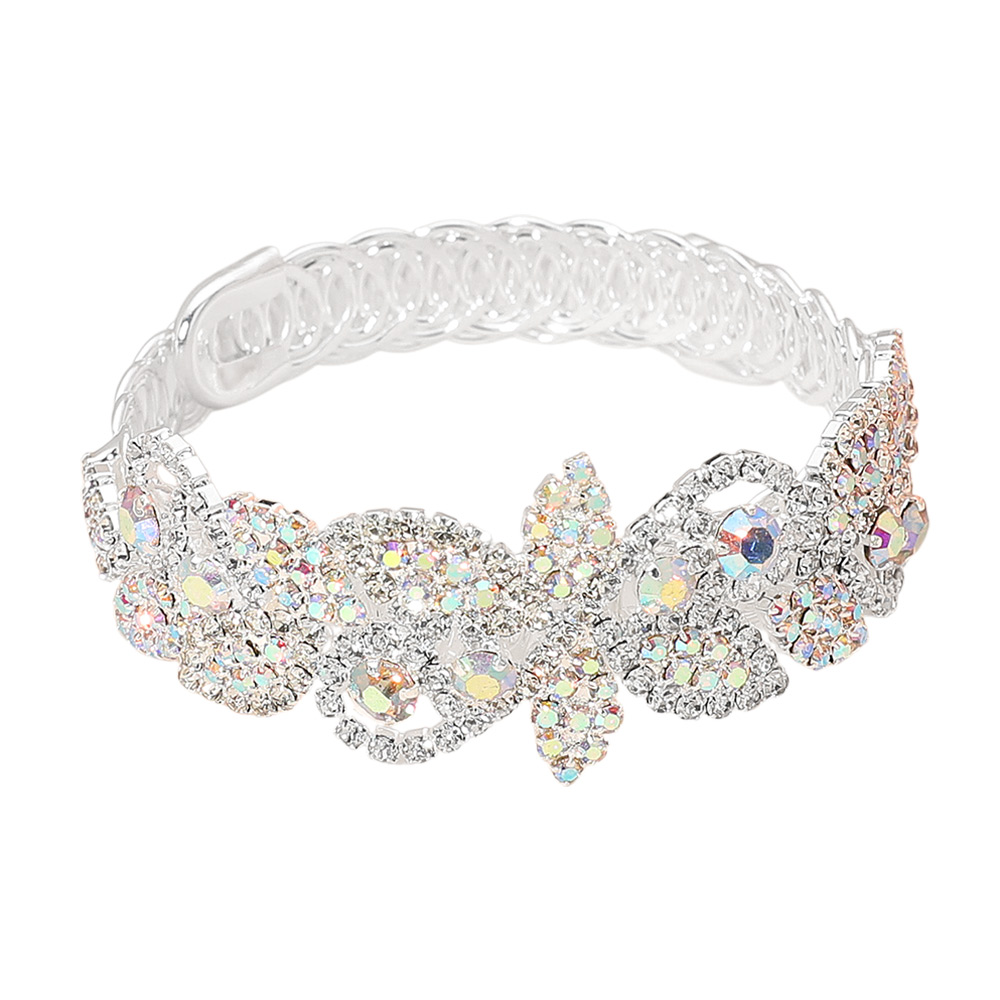 • Enhance your elegance with this crystal leaf floral adjustable bracelet. Featuring intricate leaf motifs encrusted with radiant crystals, it sparkles beautifully under any light. The flexible design offers a comfortable fit, making it the perfect statement piece for special occasions or evening wear.