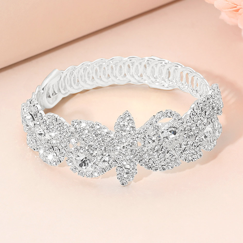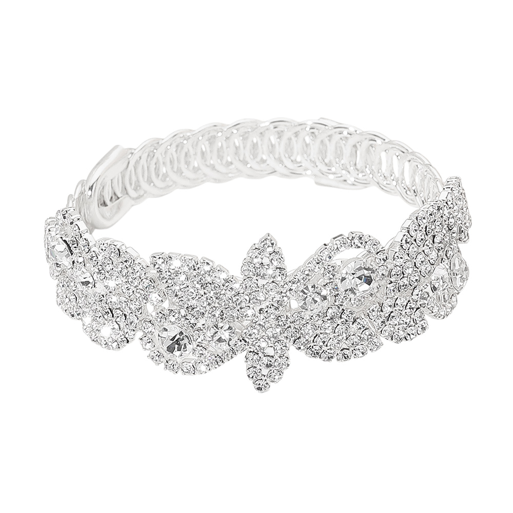 Pear Crystal Floral Rhinestone Stretch Evening Bracelet