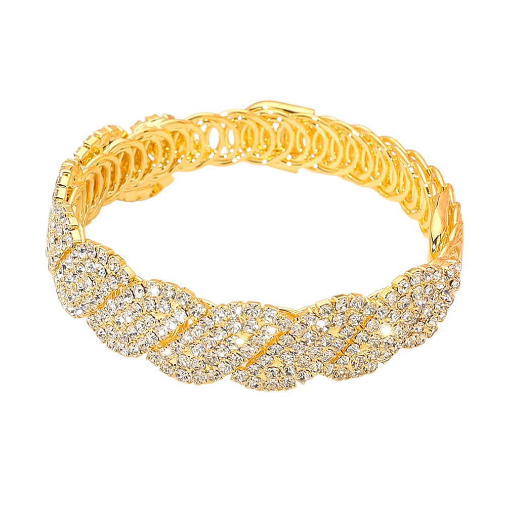 Details • Size : 0.5" H • Adjustable • Add timeless sparkle to your look with this elegant twisted crystal adjustable bracelet. Its intricate spiral design is adorned with shimmering stones that catch the light beautifully, while the flexible band ensures a perfect, comfortable fit for both special events and daily wear. • Lead and Nickel Compliant