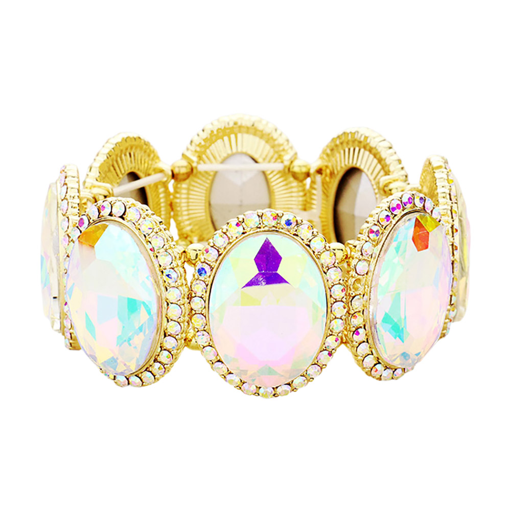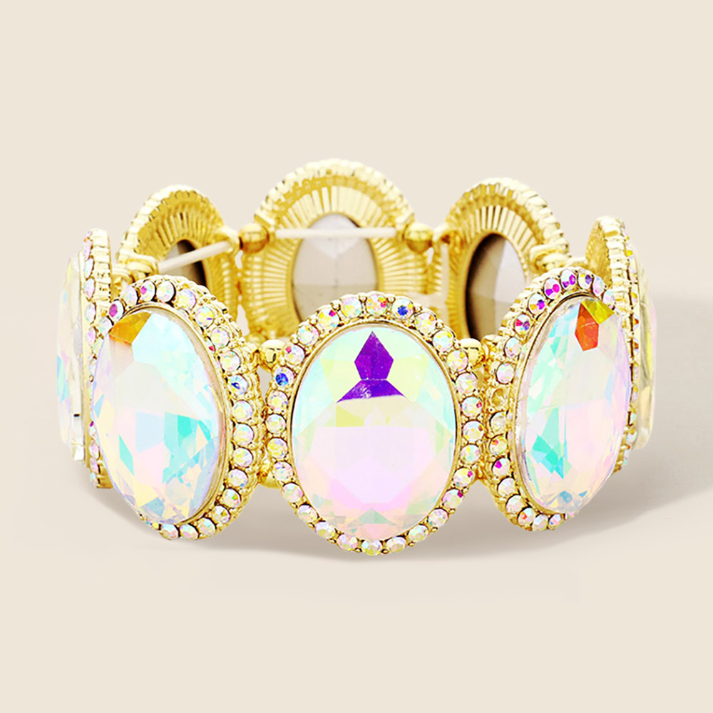 Rhinestone Trim Oval Crystal Stretch Evening Bracelet