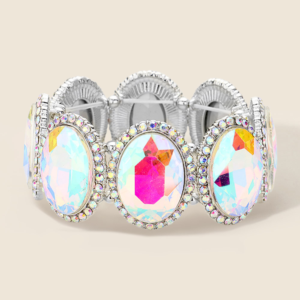 Rhinestone Trim Oval Crystal Stretch Evening Bracelet