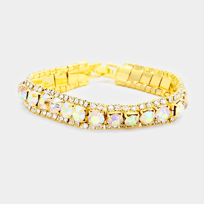 2Rows Rectangle Stone Cluster Evening Bracelet