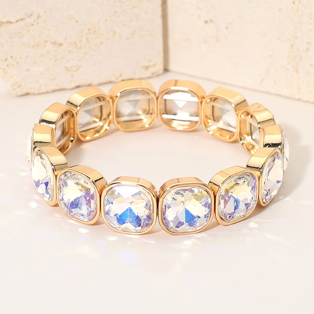 Square Cut Gem Beaded Stretch Evening Bracelet