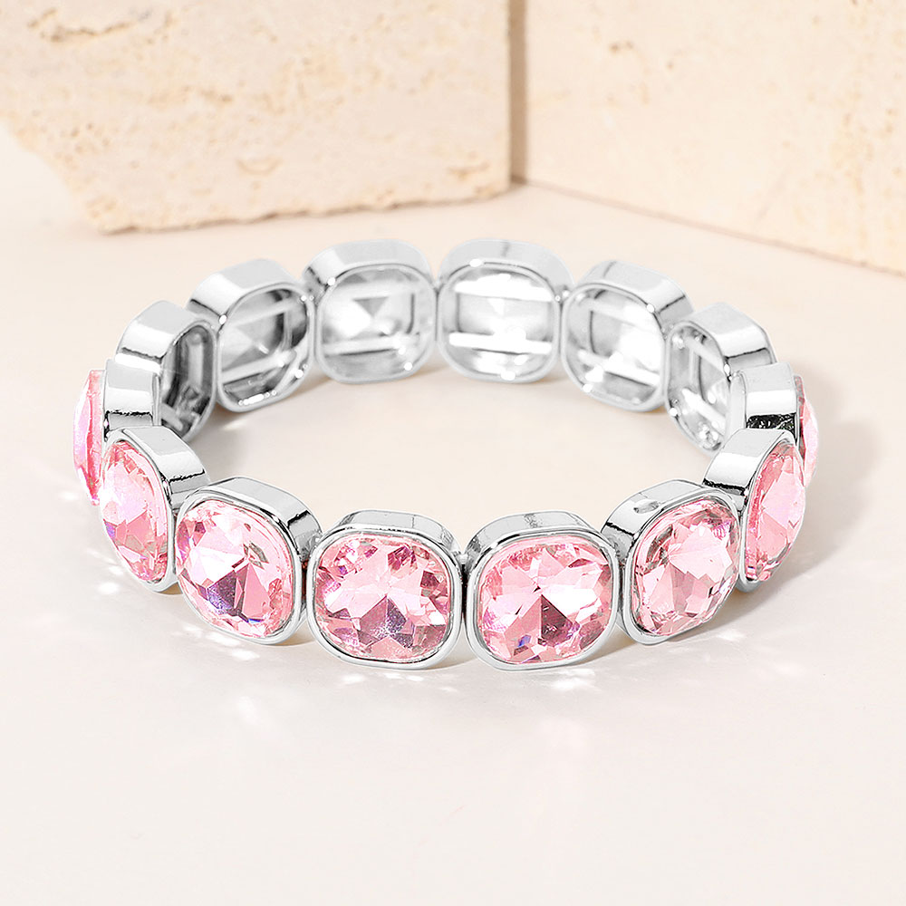 • A refined stretch bracelet showcasing square-cut stones that add brilliant sparkle and timeless sophistication. Designed for effortless wear, this striking accessory enhances any outfit with its polished finish and eye-catching geometric style, perfect for both everyday elegance and special occasions.