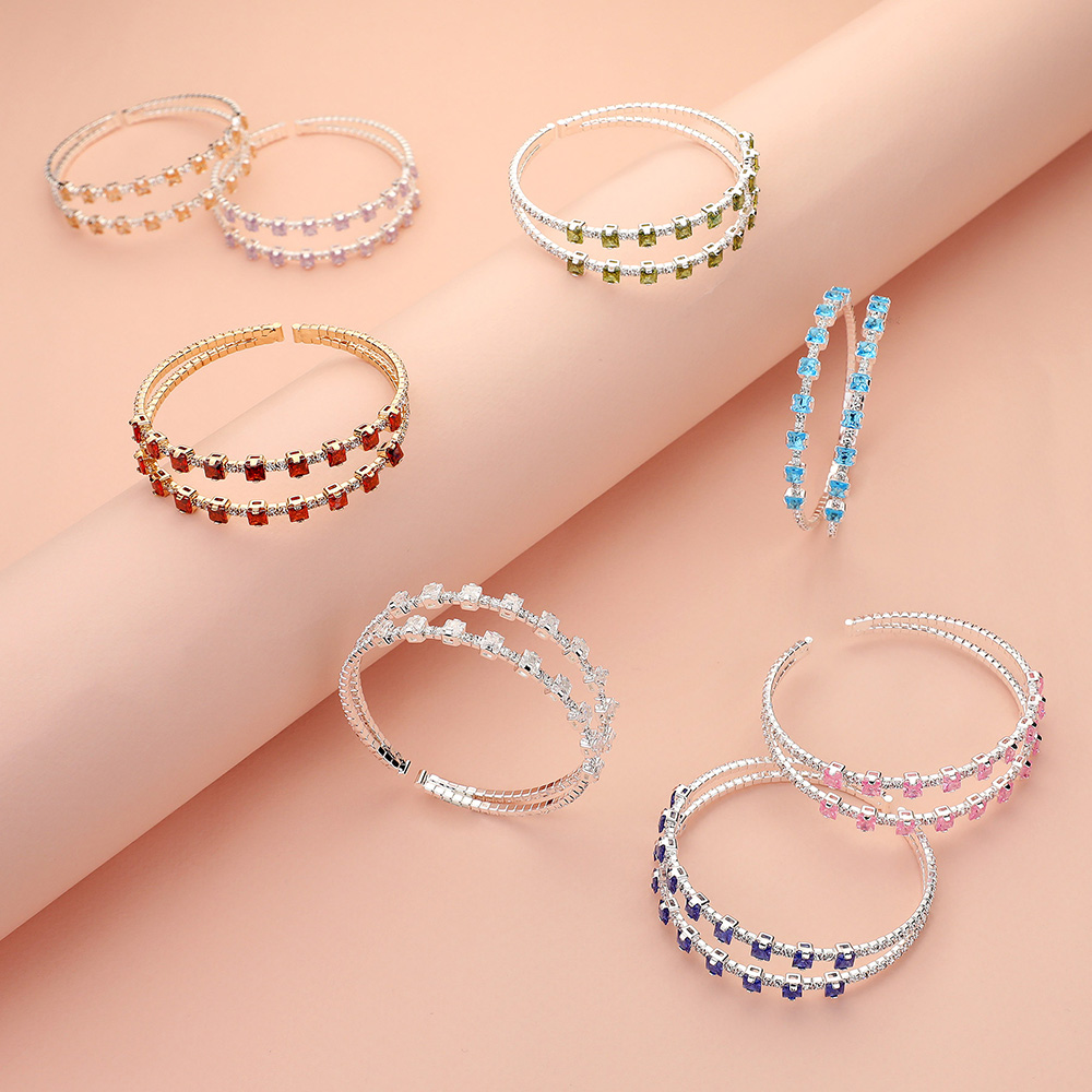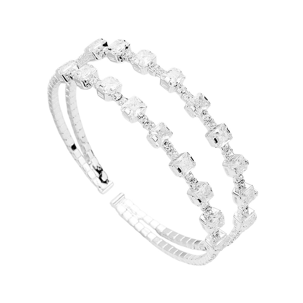 Square CZ Stone Cluster Accented Split Adjustable Evening Bracelet