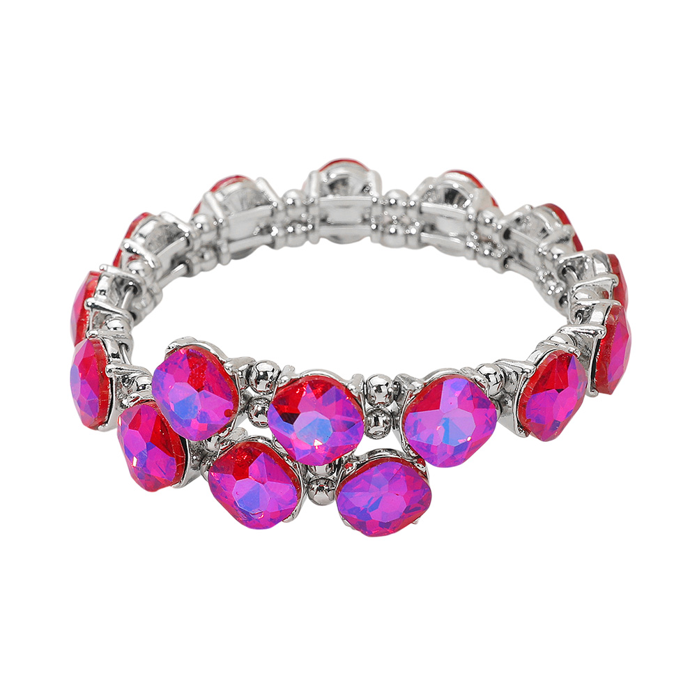 Square Stone Cluster Link Adjustable Evening Bracelet