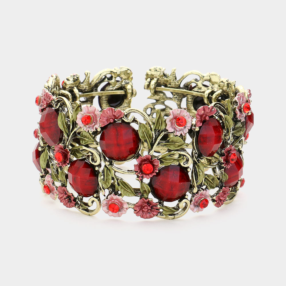 Stone Flower Leaf Cluster Evening Cuff Bracelet