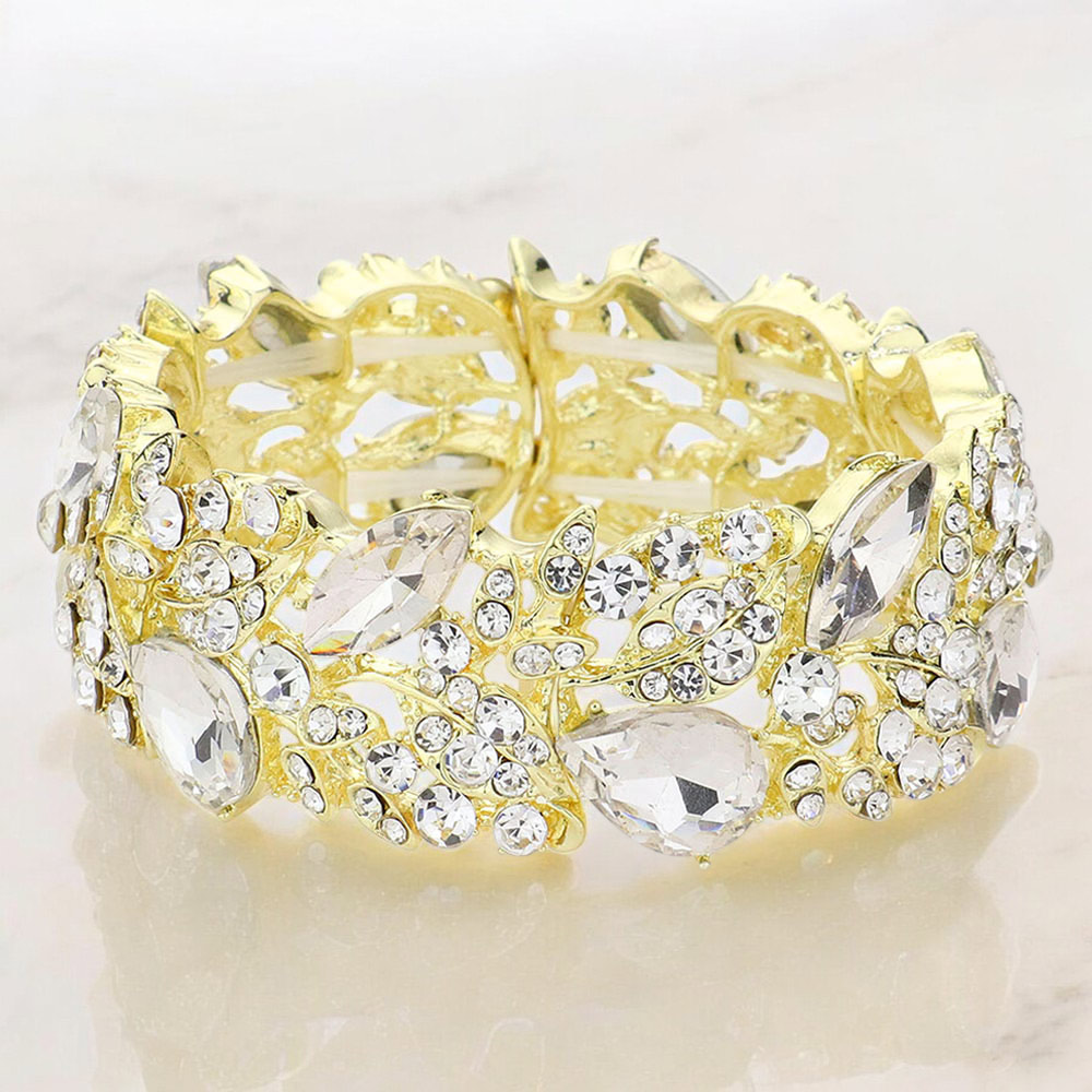 Teardrop Marquise Stone Cluster Stretch Evening Bracelet