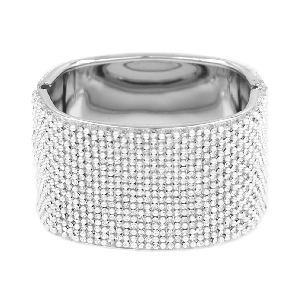 • Statement bangle bracelet featuring a bold, wide silhouette with a smooth interior and secure hinge closure. Designed to elevate evening looks, bridal styling, and special occasions, this bracelet delivers high-impact shine and a polished finish for confident, standout accessorizing.
