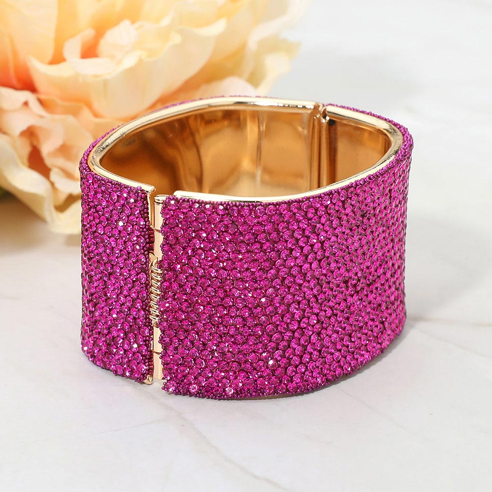 Wide Rhinestone Paved Hinged Evening Bangle Bracelet