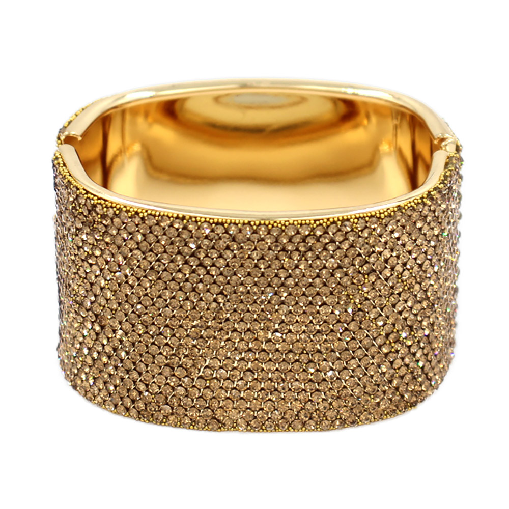 Wide Rhinestone Paved Hinged Evening Bangle Bracelet
