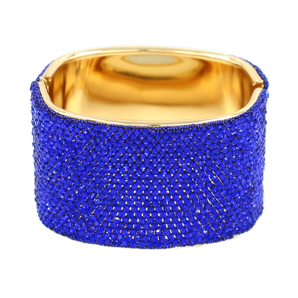 Wide Rhinestone Paved Hinged Evening Bangle Bracelet