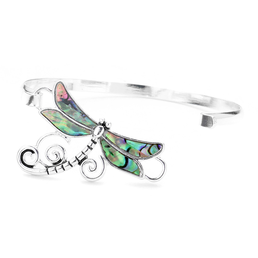 Abalone Embossed Metal Dragonfly Pendant Necklace