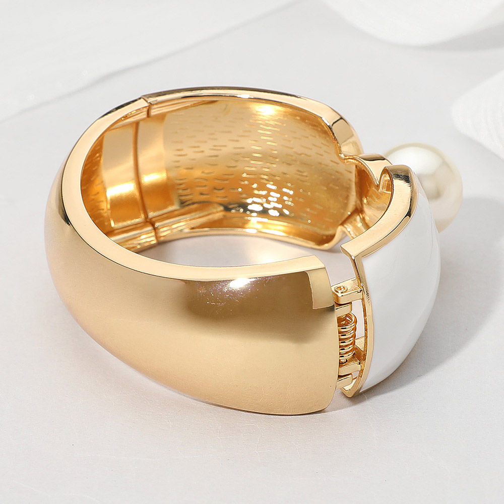 Bold Central Pearl Accent Wide Enamel Hinged Bangle Bracelet
