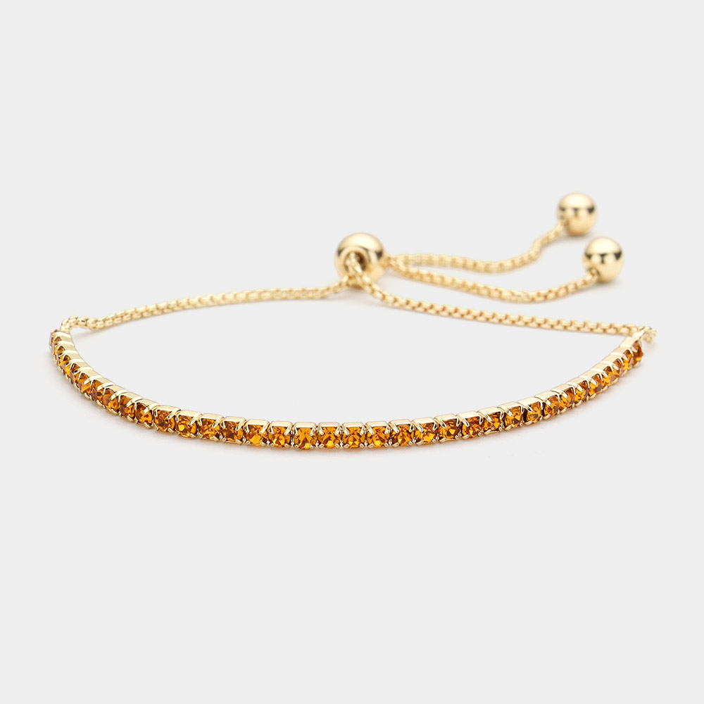 Brass Metal Rhinestone Adjustable Pull Tie Bracelet