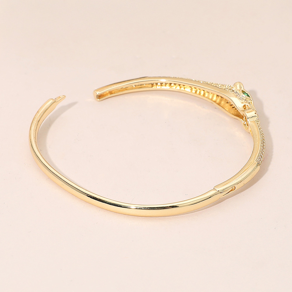 CZ Stone Paved Panther Leopard Head Accent Hinged Bangle Bracelet