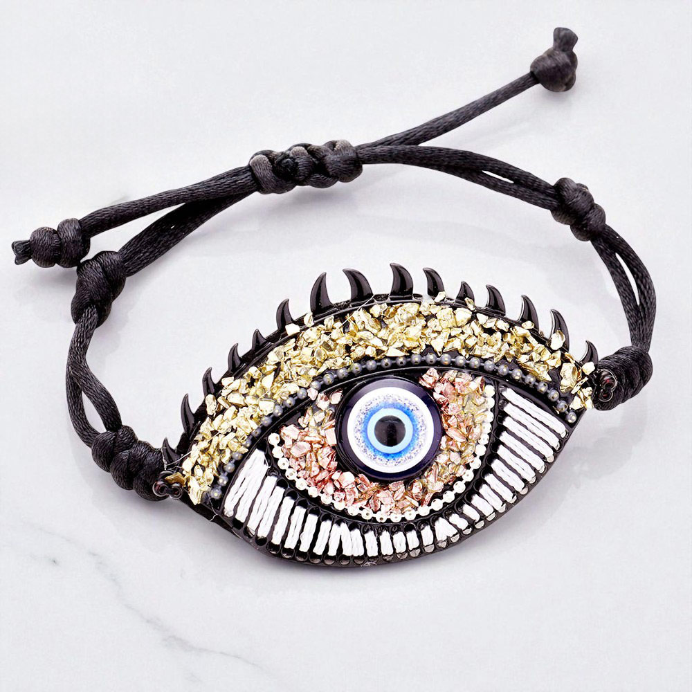 Evil Eye Detail Adjustable Cinch Pull Tie Bracelet