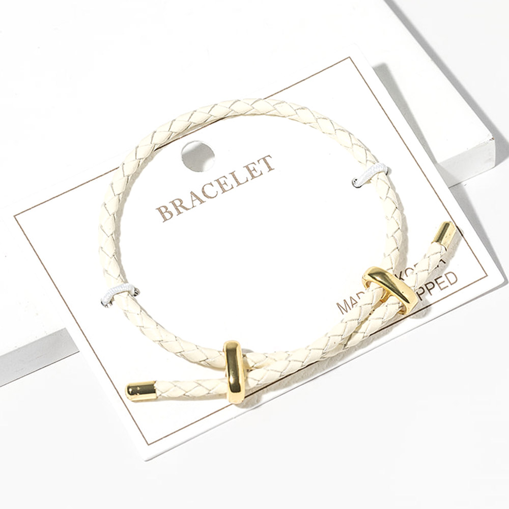 Faux Leather Braided Gold Dipped Tip Adjustable Bracelet