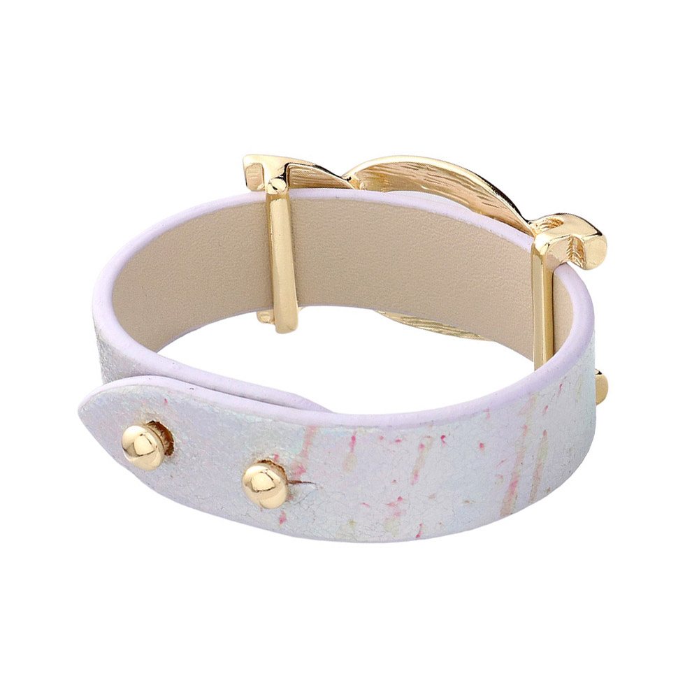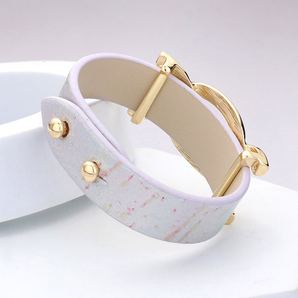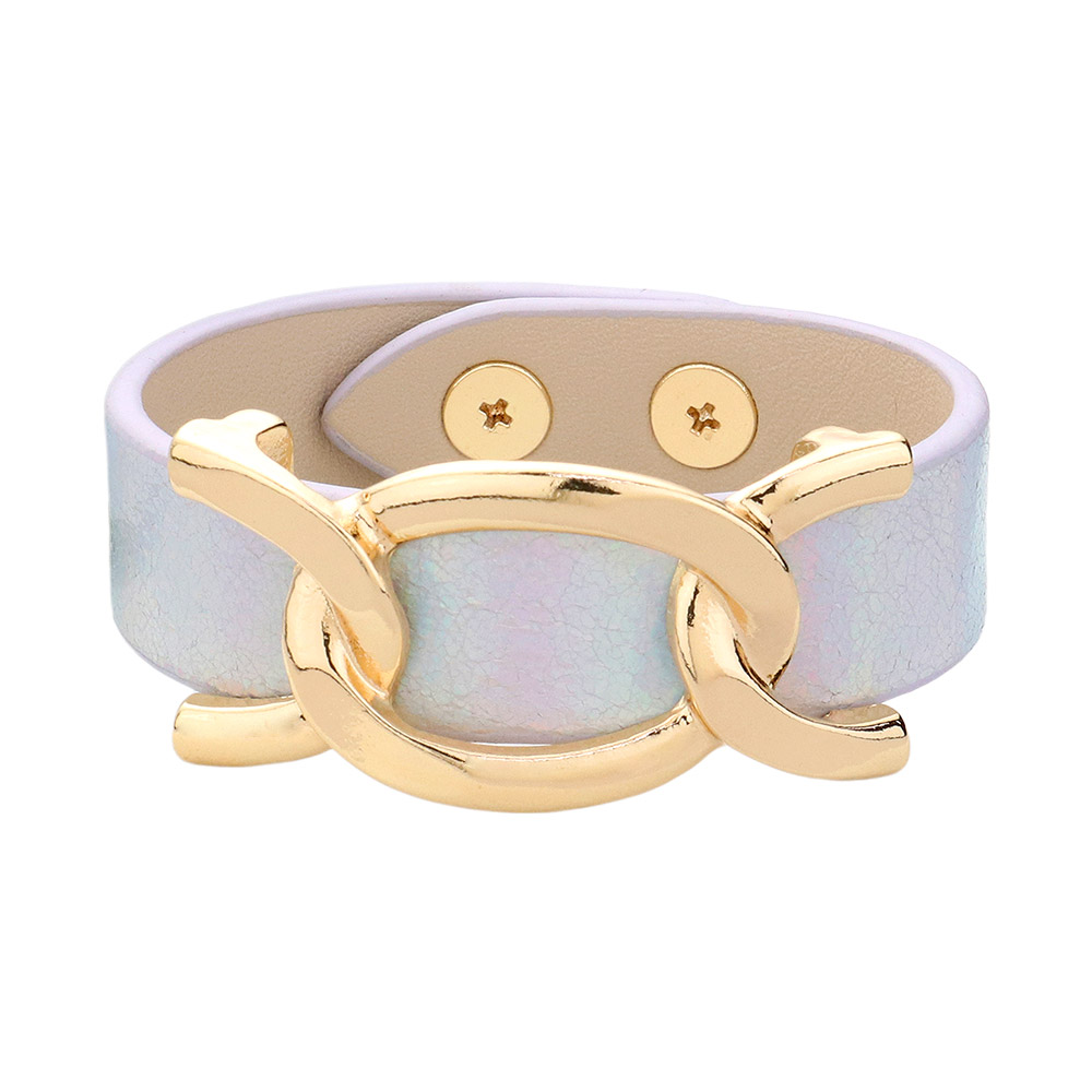 Faux Sparkle Leather Metal Link Accented Snap Bracelet