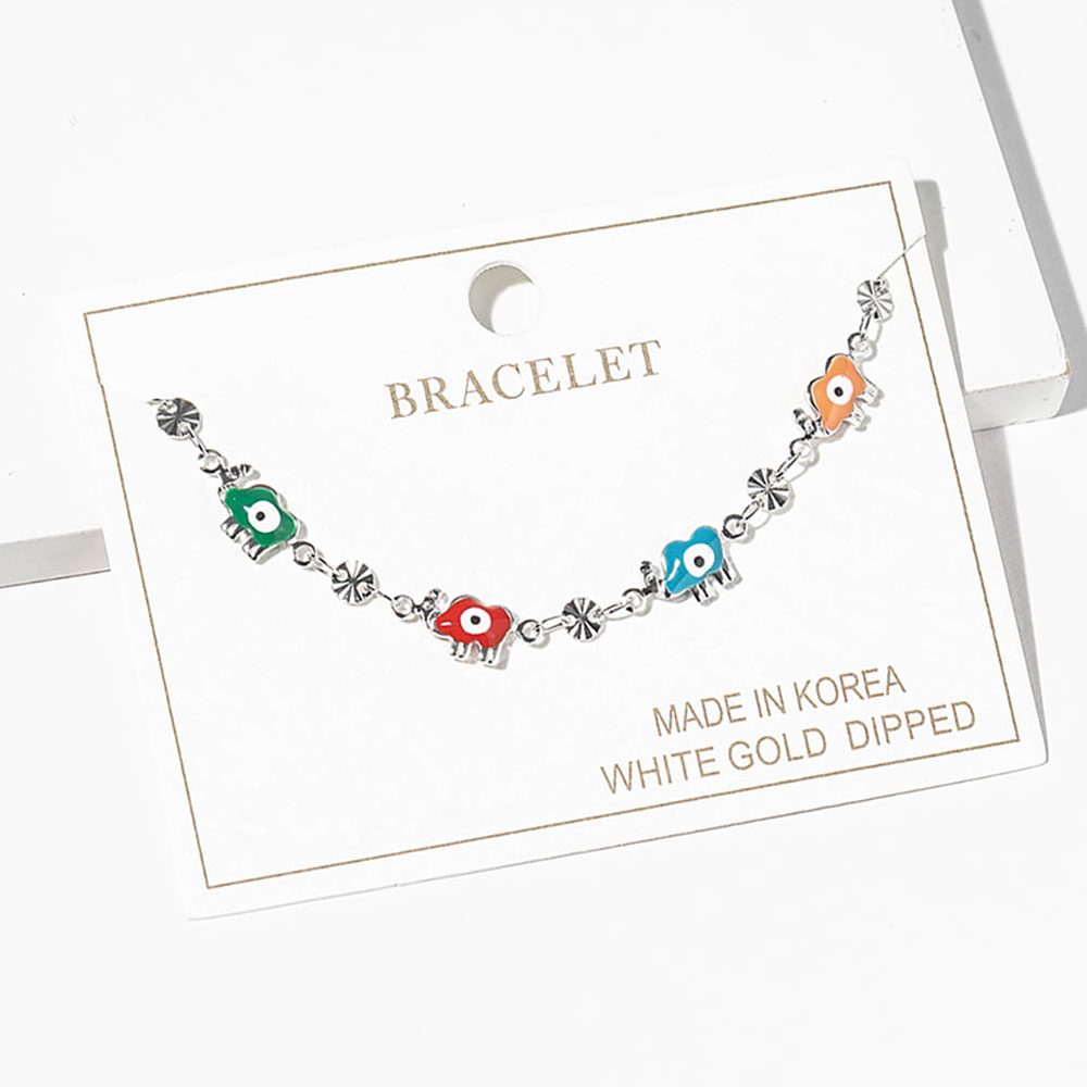 • Embrace charm and protection with this elegant elephant bracelet featuring evil eye accents. Its intricate design symbolizes luck and positivity, making it a meaningful accessory to complement any outfit or a thoughtful gift for loved ones.