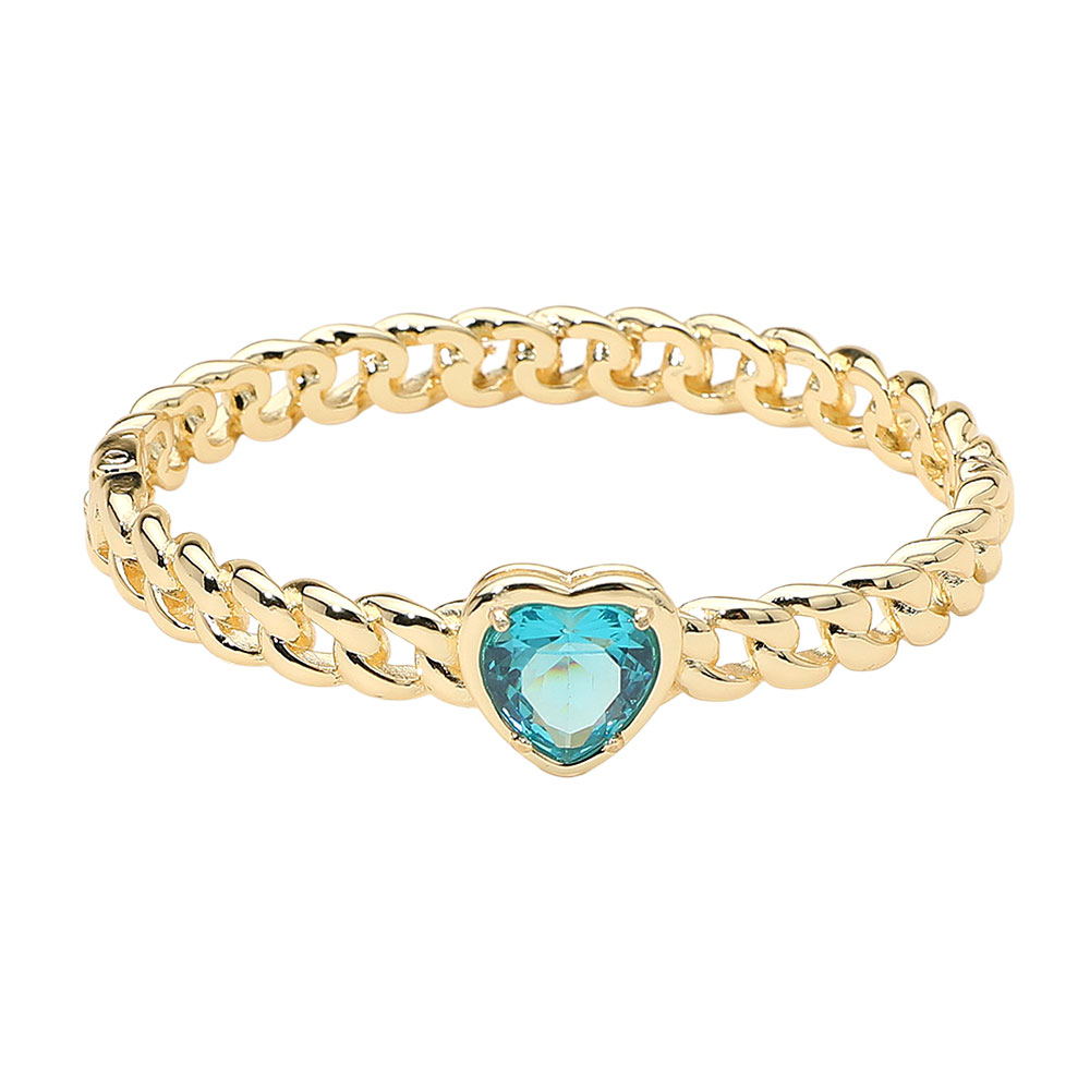 Details • Size : 0.6" H, 2.4" D • Hinged Closure • This elegant chain-link bracelet features a romantic heart-shaped gemstone centerpiece, blending modern charm with timeless beauty. Designed to add a hint of sophistication and sentiment, it’s perfect for both everyday wear and as a thoughtful, stylish gift.