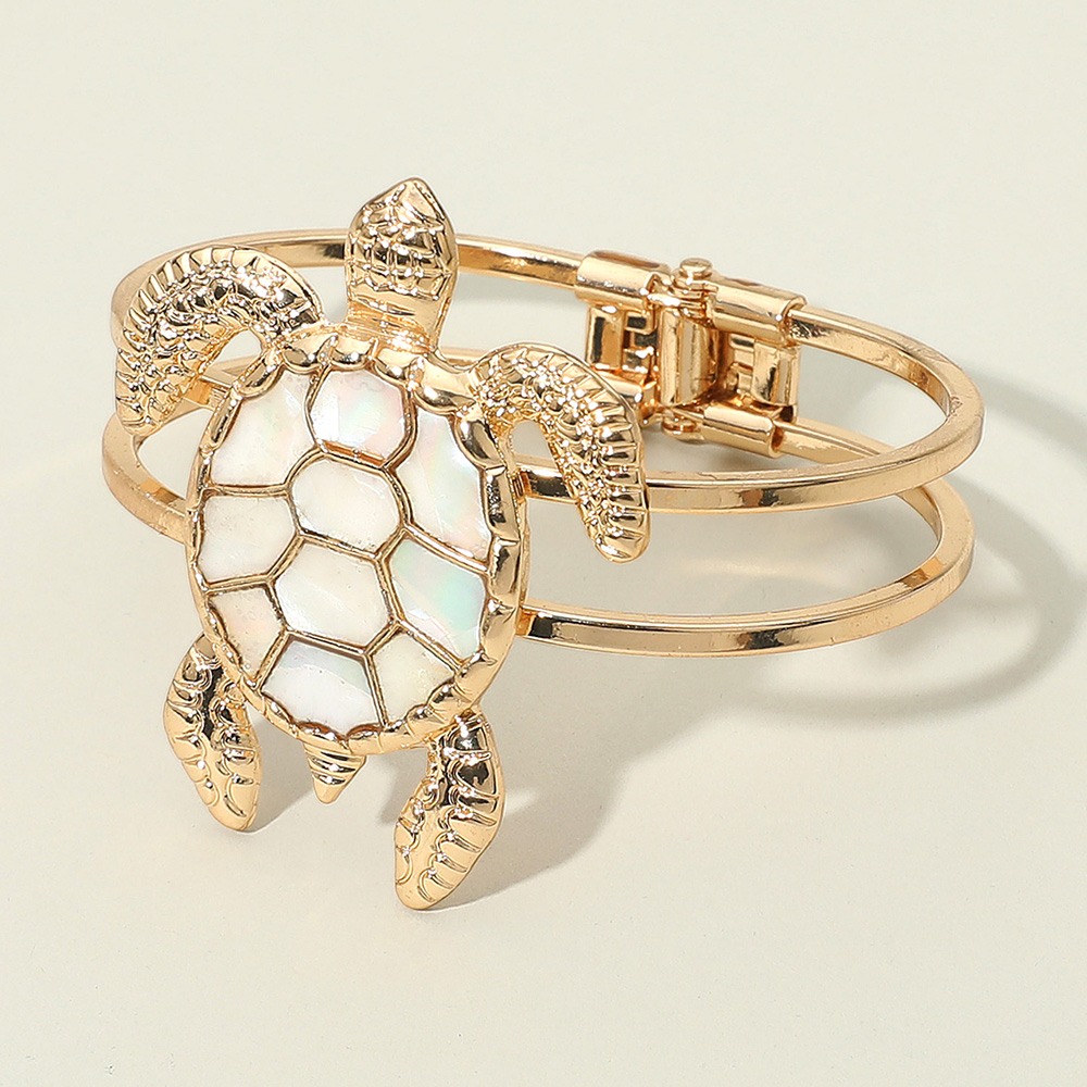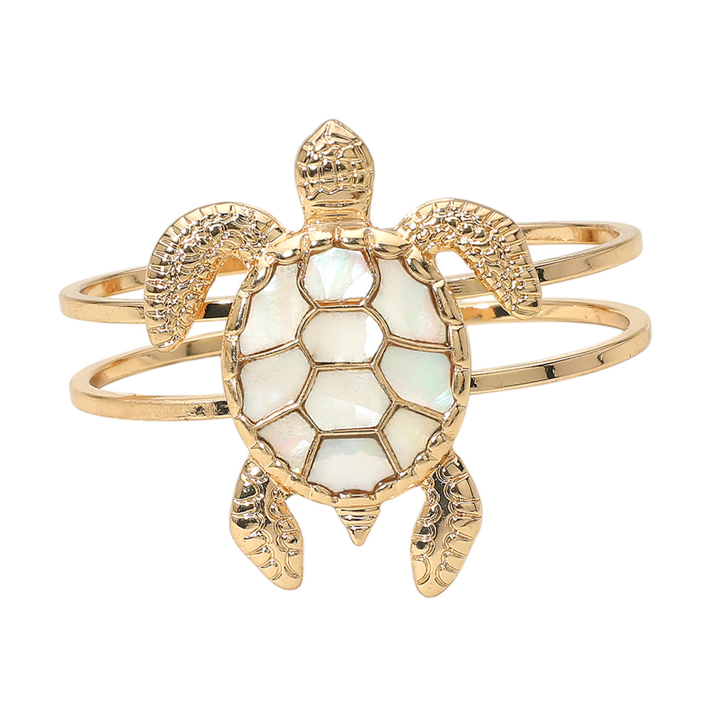 Intricate Mother of Pearl Shell Design Turtle Hinged Bracelet