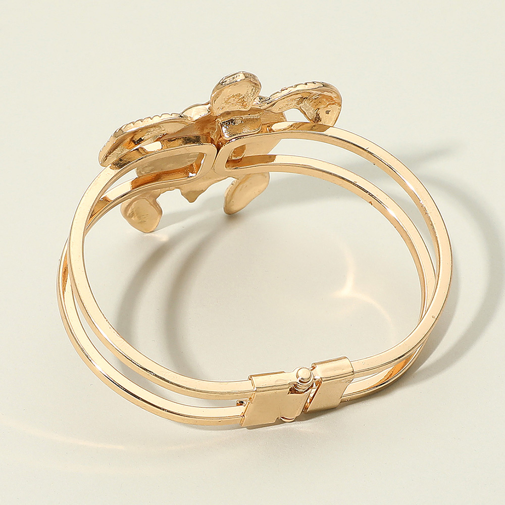 Details • Size : 2.2" H, 2.5" D • Hinged Closure • Make a unique style statement with this turtle cuff bracelet featuring an intricately detailed shell design. Blending charm and symbolism, it adds a playful yet elegant touch to any outfit, making it a standout accessory for ocean-inspired and nature lovers alike. • Lead and Nickel Compliant
