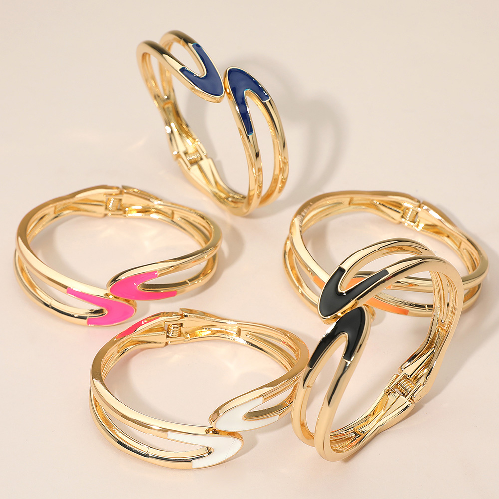 Sleek Open Design Modern Enamel Hinged Bangle Bracelet