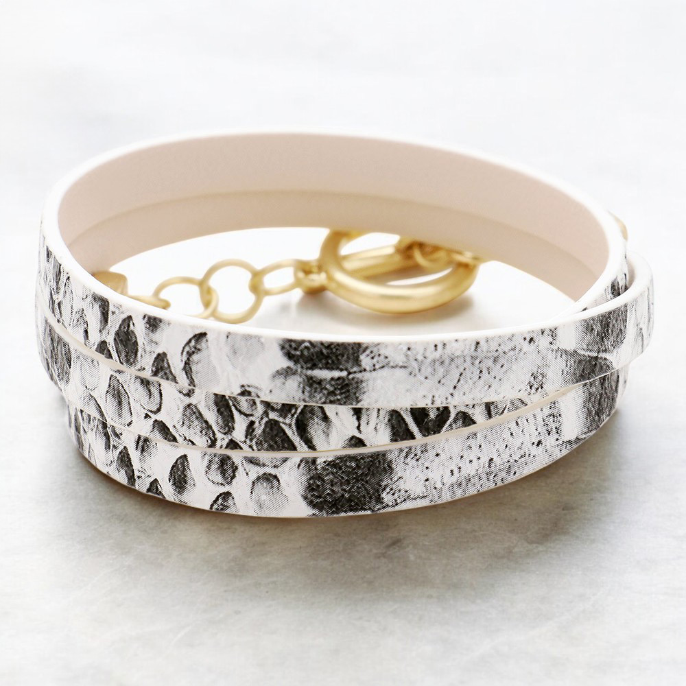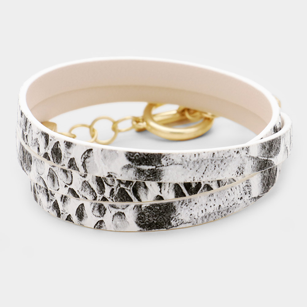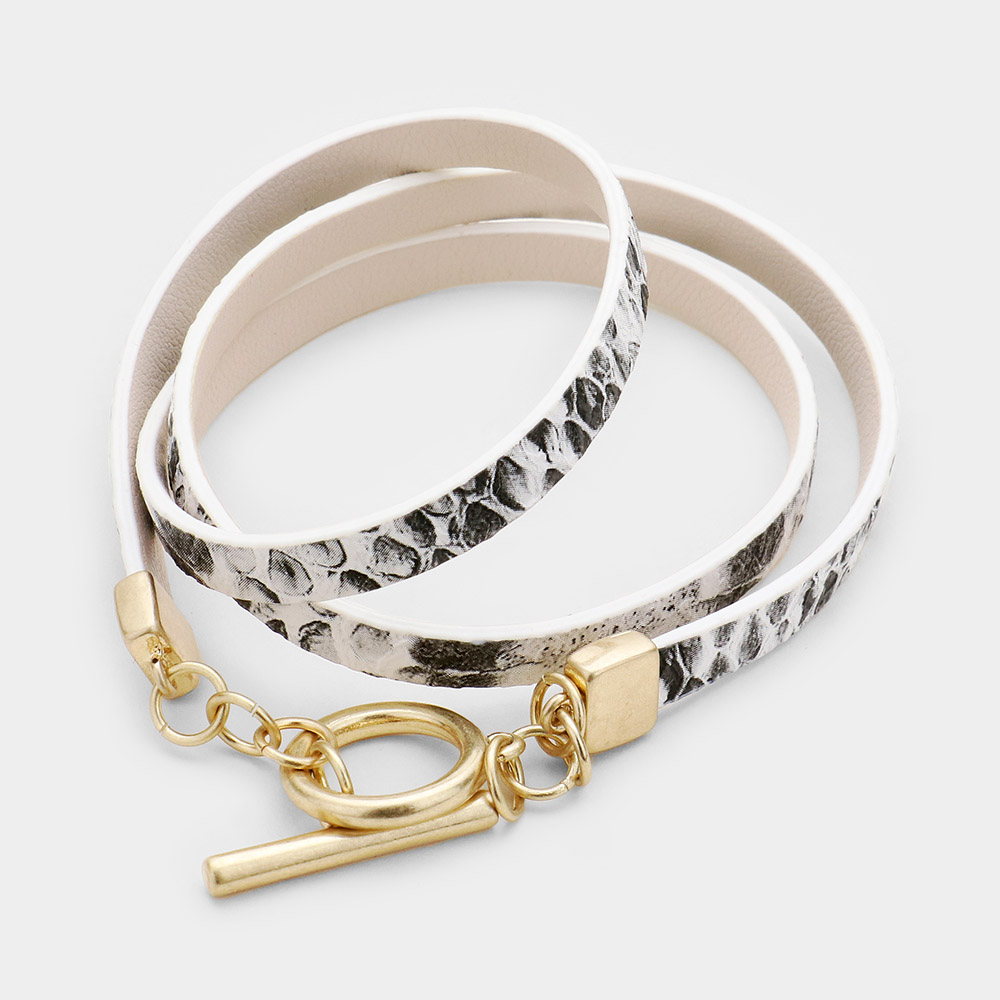 Snake Pattern Faux Leather Wrap Toggle Bracelet