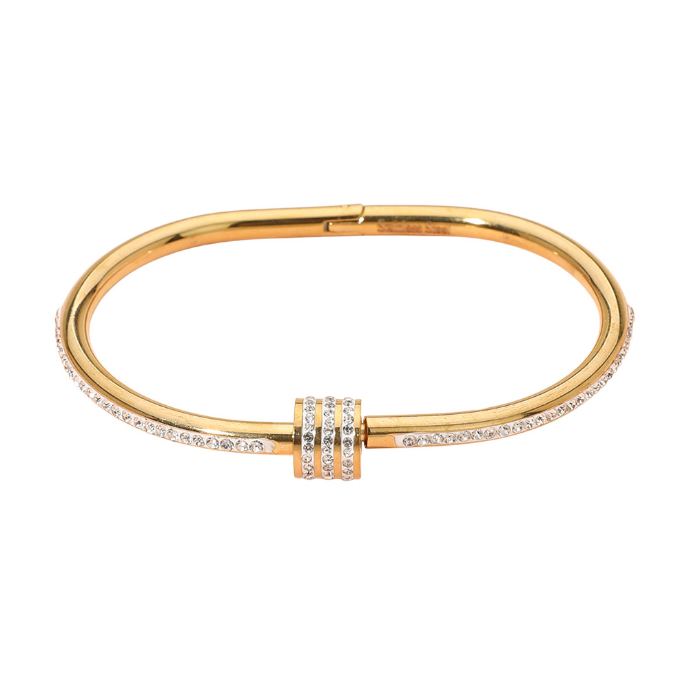 • Modern open hinged bracelet featuring a sleek silhouette and refined crystal detailing for subtle sparkle. Designed to layer effortlessly or wear solo, this versatile bracelet complements casual and elevated looks, making it a timeless choice for curated jewelry collections and gift-ready displays.