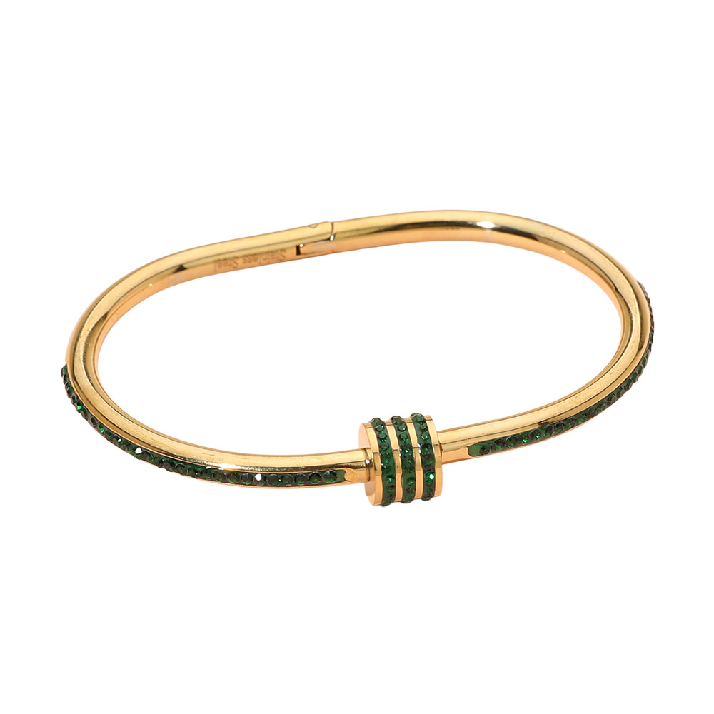 • Modern open hinged bracelet featuring a sleek silhouette and refined crystal detailing for subtle sparkle. Designed to layer effortlessly or wear solo, this versatile bracelet complements casual and elevated looks, making it a timeless choice for curated jewelry collections and gift-ready displays.