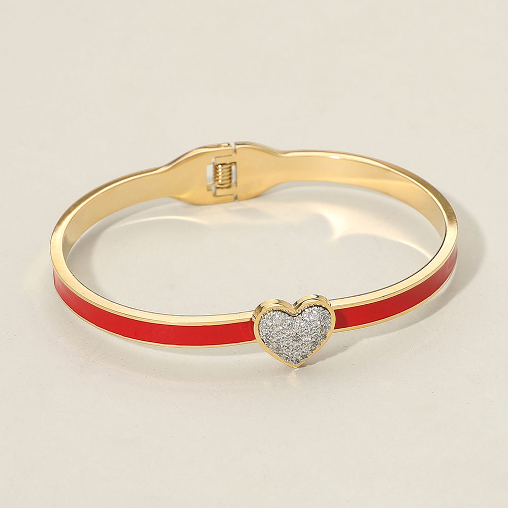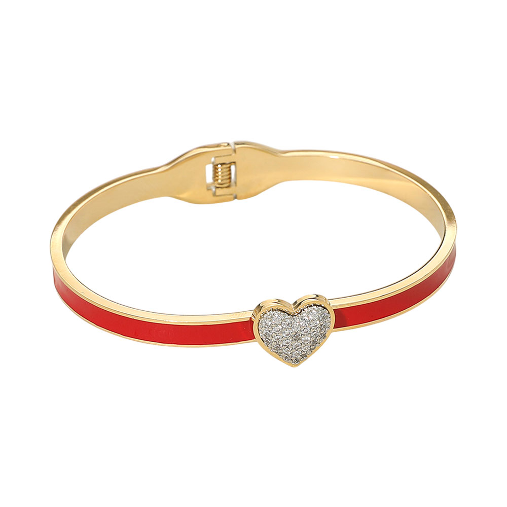 • Sleek hinged bangle bracelet featuring a centered heart accent with shimmering surface detail. Designed for comfortable wear and secure closure, this refined piece layers effortlessly or stands alone for everyday styling and gifting.