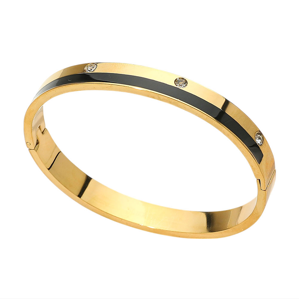 Stainless Steel Enamel Inlay CZ Stone Accents Hinged Bangle Bracelet