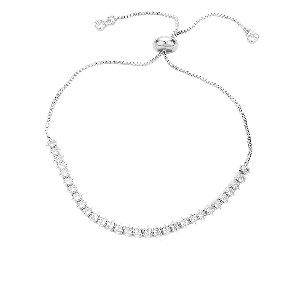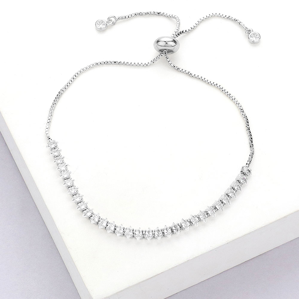 Stainless Steel Marquise CZ Stone Tennis Chain Pull Tie Adjustable Bracelet