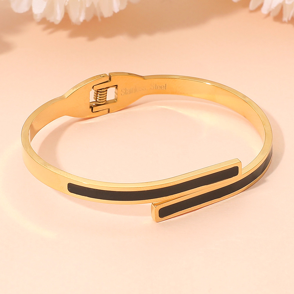• Elegant bangle bracelet featuring a sleek overlapping design enhanced with a refined inlay detail. Its minimalist yet stylish look makes it a versatile accessory, perfect for adding a touch of sophistication to everyday outfits or evening ensembles.