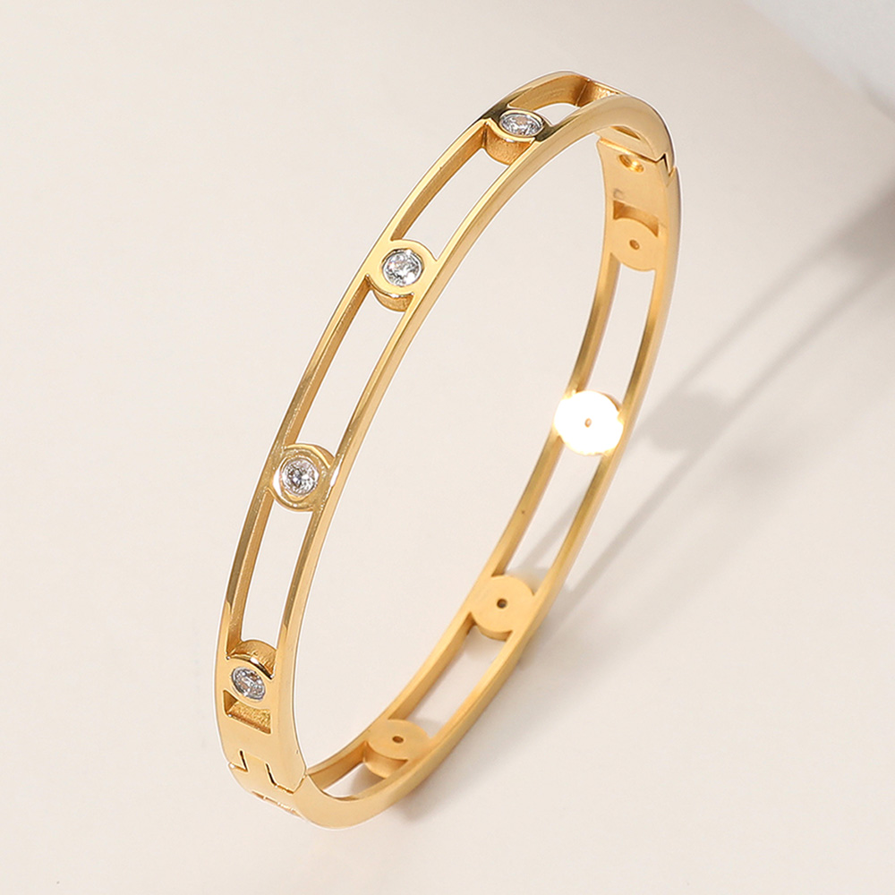 Stainless Steel Stone Bezel Hinged Bangle Bracelet