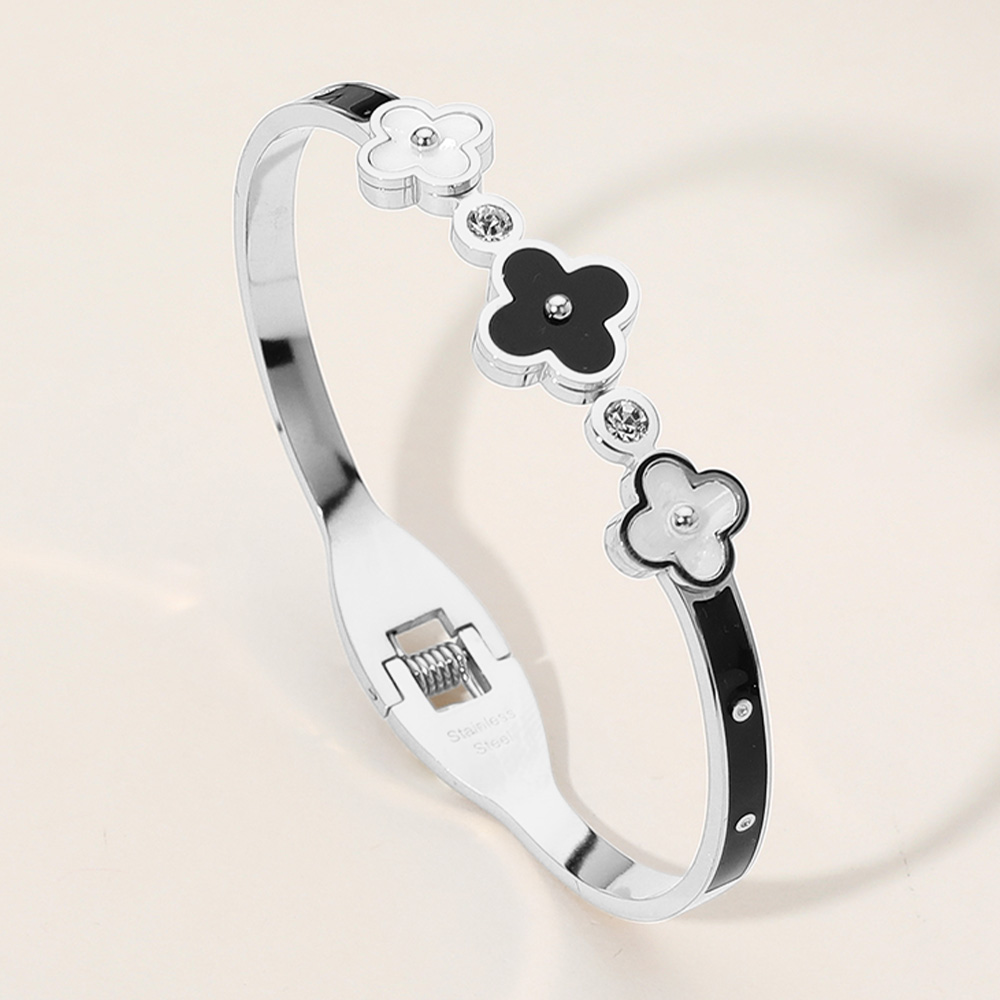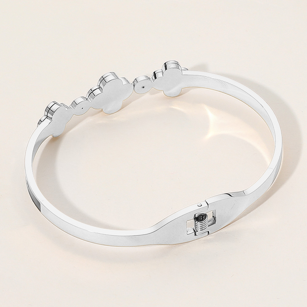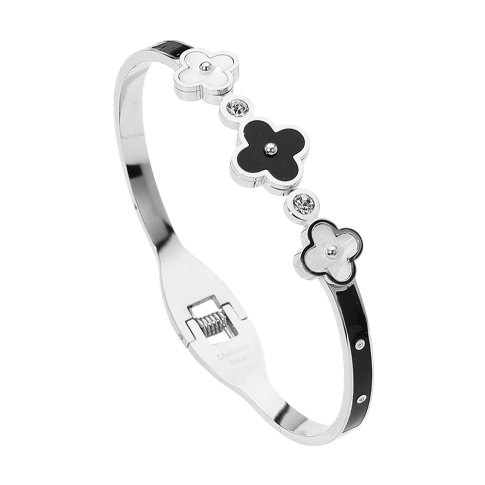 • Refined and stylish, this clover bangle bracelet features alternating quatrefoil motifs with sparkling crystal accents. Its sleek design brings a touch of modern elegance, making it perfect for both everyday wear and special occasions. A versatile accessory that pairs beautifully with any outfit.