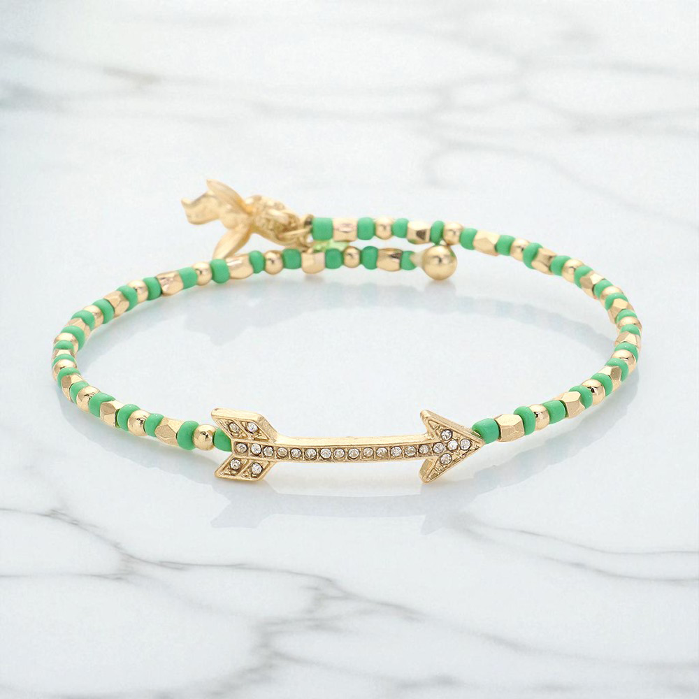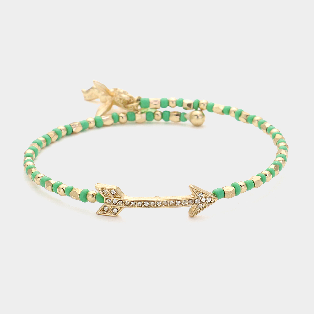 Stone Paved Arrow Pointed Cupid Charm Beaded Adjustable Bracelet