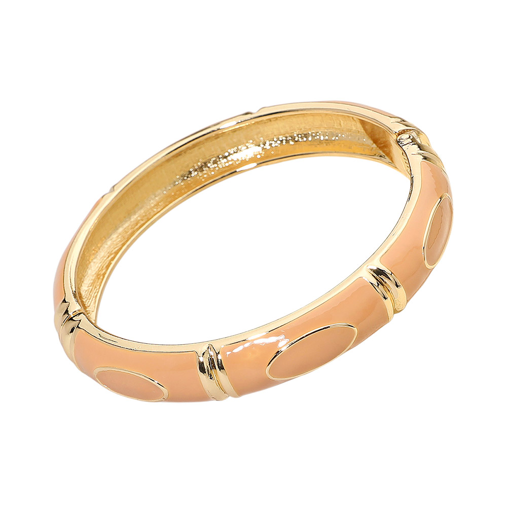 Details • Size : 0.4" H, 2.4" D • Hinged Closure • Elegant enamel bangle bracelet featuring smooth oval accents and a polished hinged design. A timeless statement accessory that adds refined charm to any outfit. Perfect for formal, casual, or workwear styling with a sleek and sophisticated finish. • Lead and Nickel Compliant