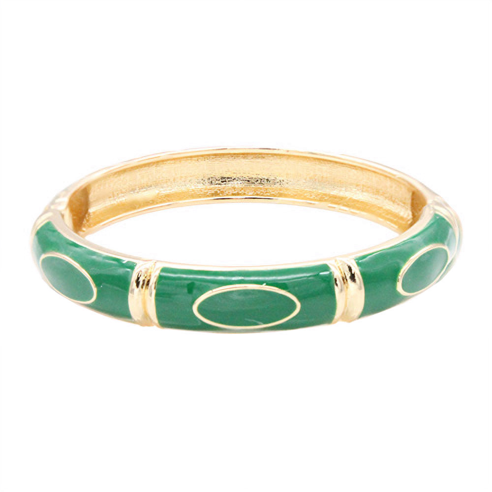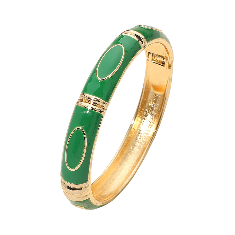 • Elegant enamel bangle bracelet featuring smooth oval accents and a polished hinged design. A timeless statement accessory that adds refined charm to any outfit. Perfect for formal, casual, or workwear styling with a sleek and sophisticated finish.