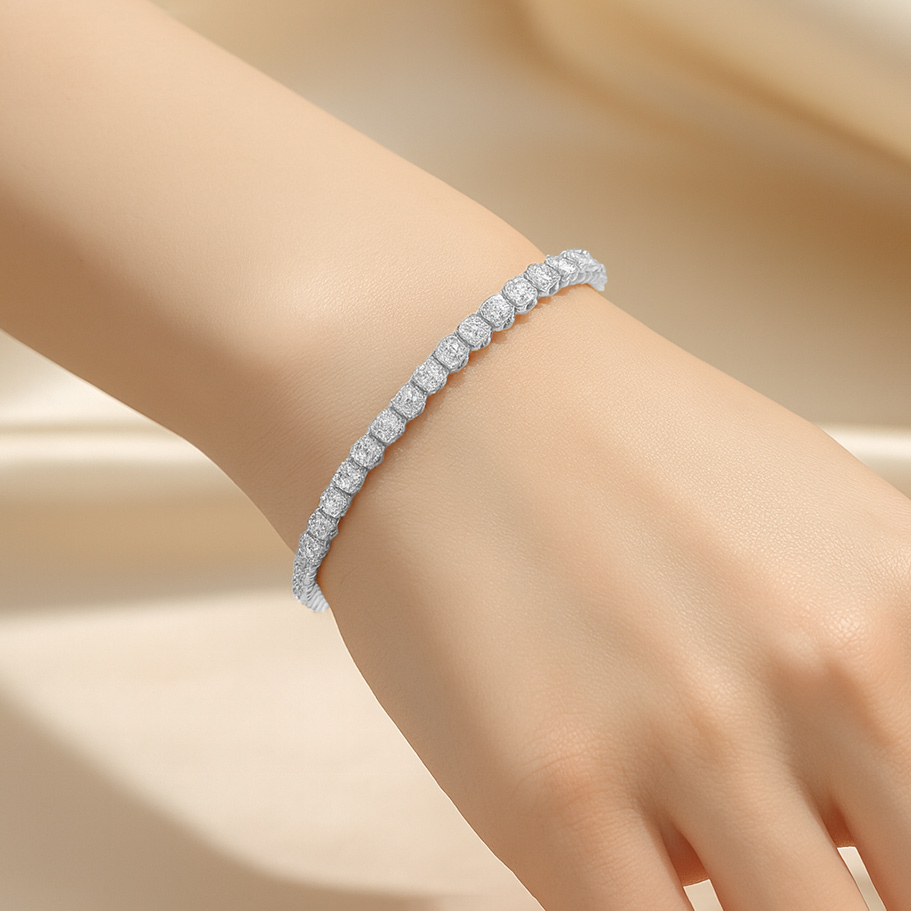 • Elegant tennis bracelet featuring a continuous row of dazzling round stones in a sleek, timeless design. Crafted for everyday sophistication or special occasions, this bracelet offers brilliant shine, secure closure, and effortless elegance that complements any outfit.