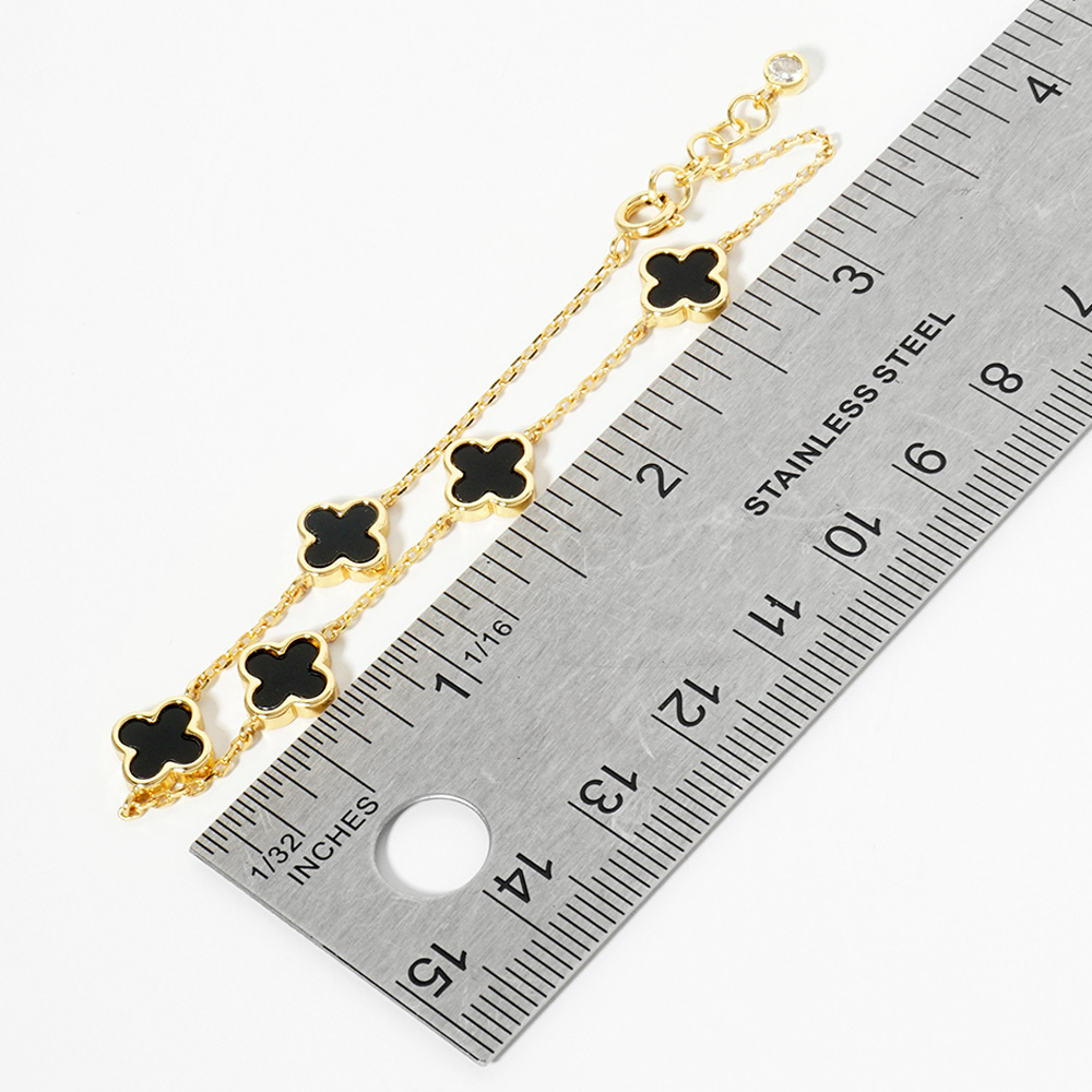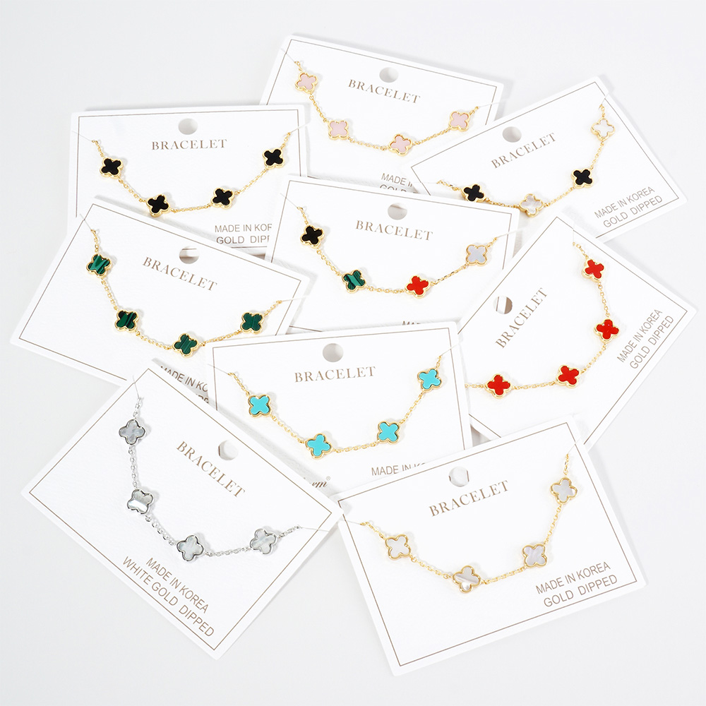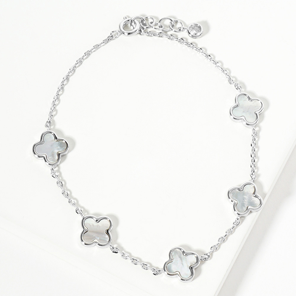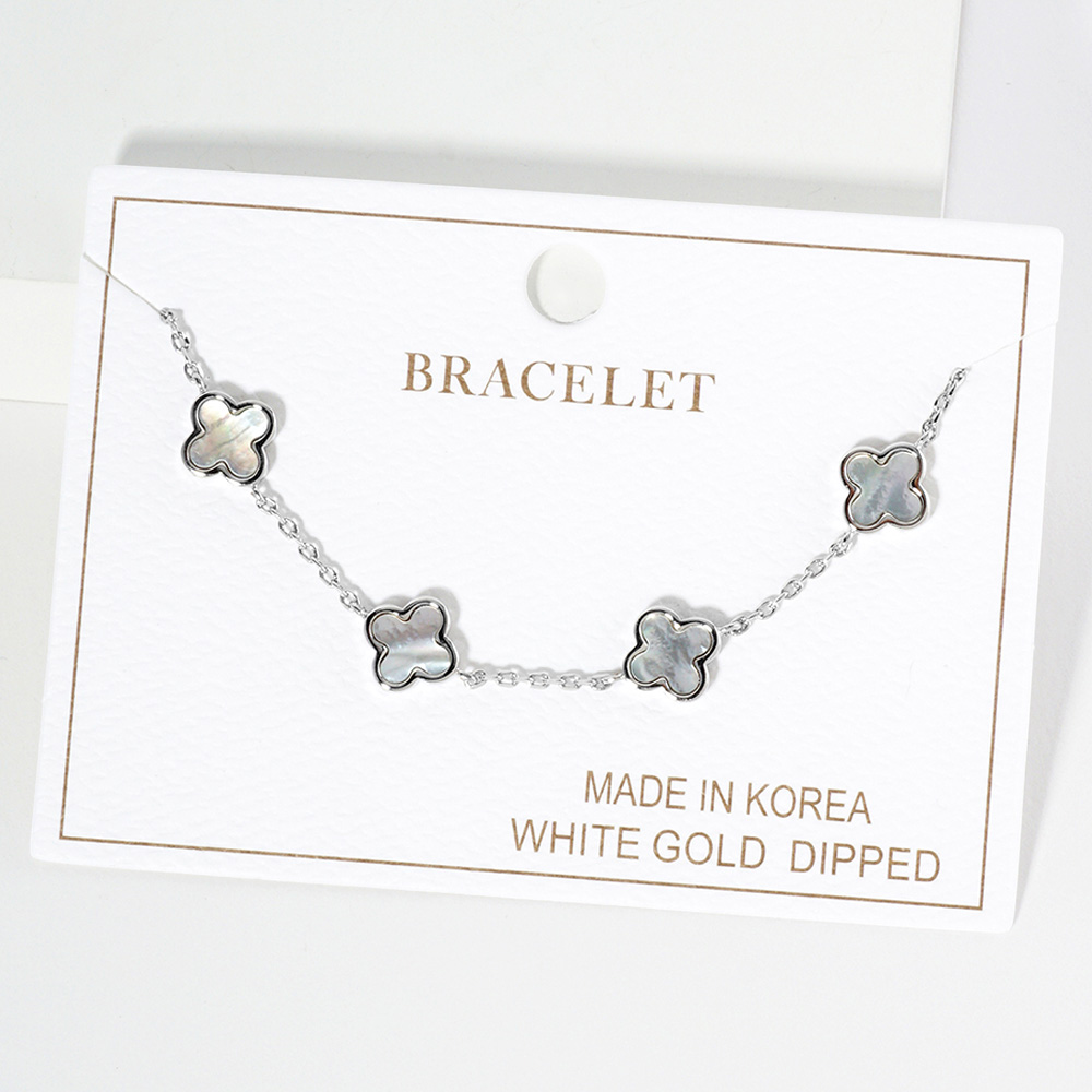 White Gold Dipped Mother Of Pearl Quatrefoil Station Bracelet