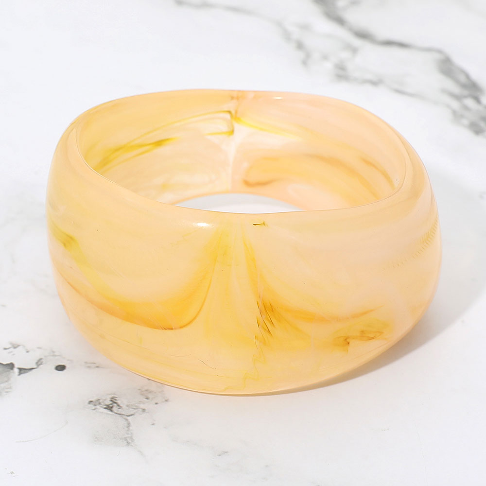 Details • Size : 1.7" H, 2.5" D • Sculptural wide bangle designed to elevate everyday looks with effortless impact. Its smooth silhouette slips on comfortably and layers beautifully with other pieces or stands alone as a standout accessory for casual wear, work outfits, or evening styling.