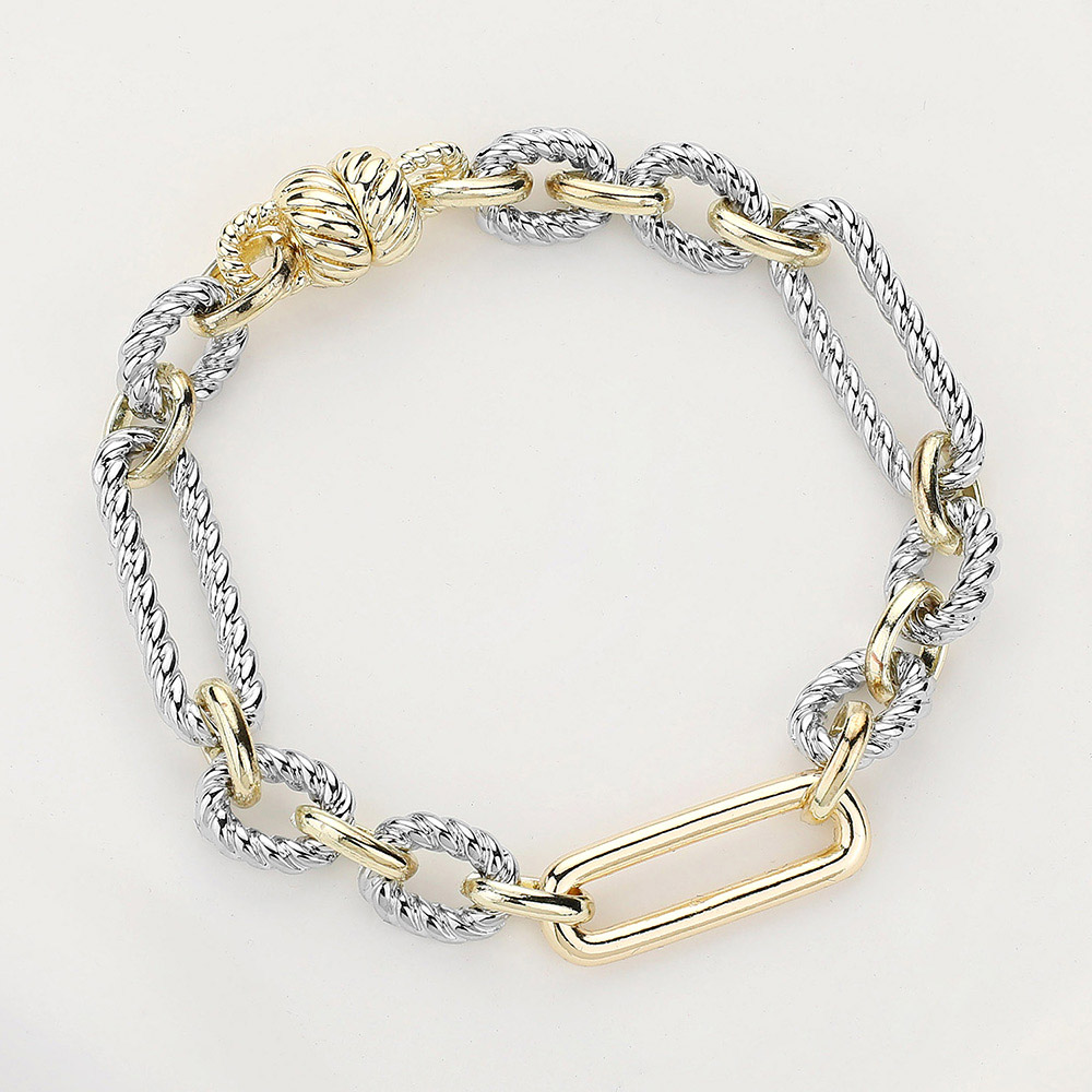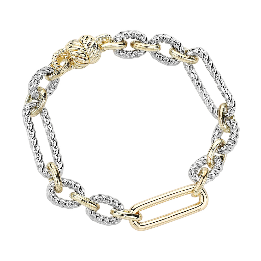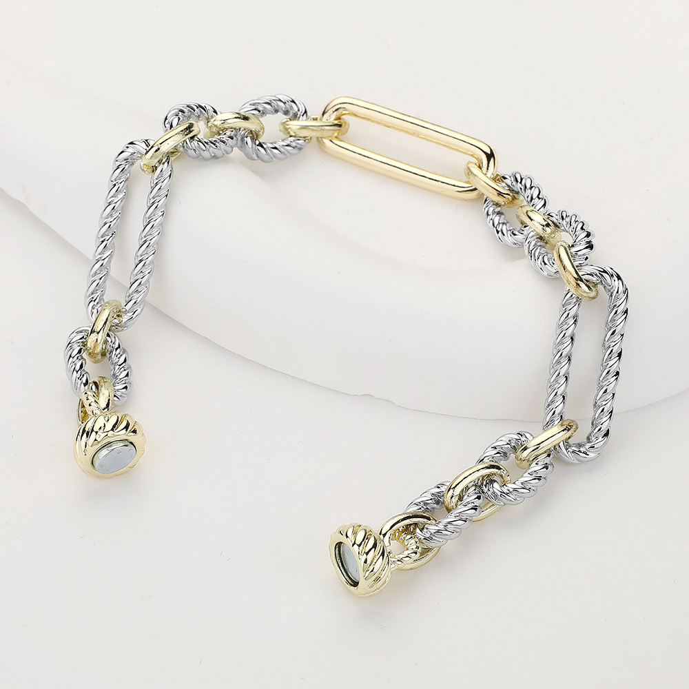 14k Gold Plated Two Tone Textured Oval Chain Magnetic Bracelet