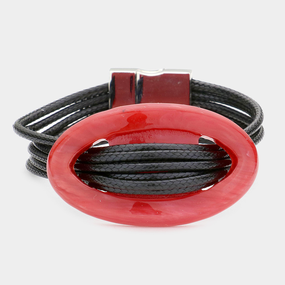 Celluloid hoop accented multi-tier cord bracelet