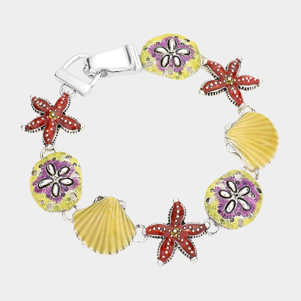 Enamel Starfish Sand Dollar Shell Link Magnetic Bracelet