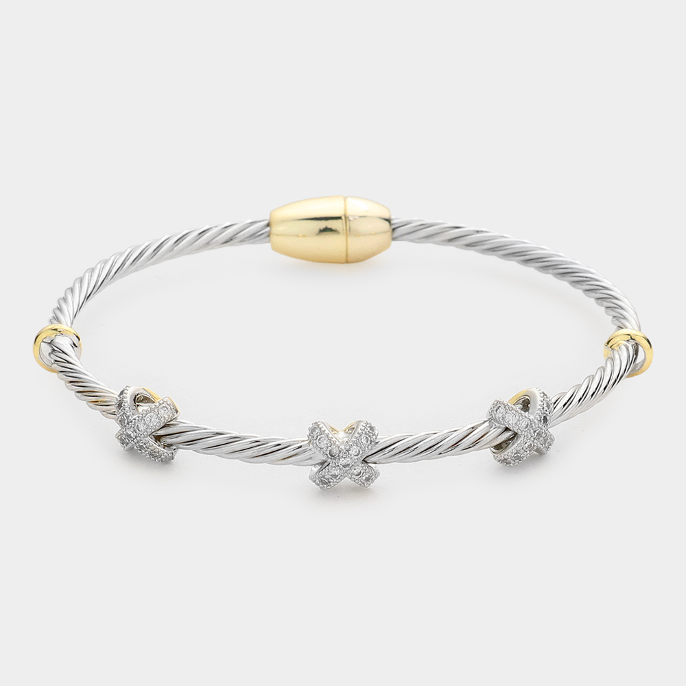 Rhinestone Embellished Crisscross Pointed Magnetic Bracelet