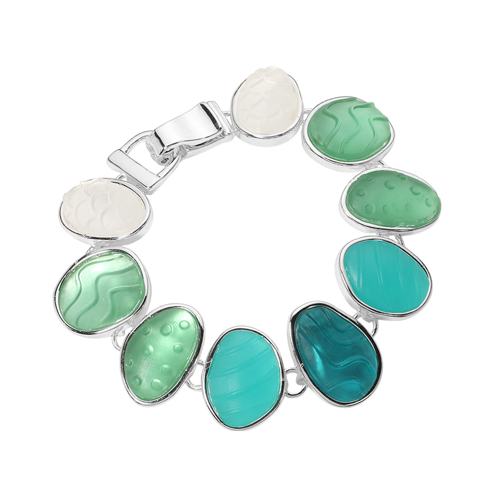 Textured Green Shade Multi Colored Sea Glass Dome Magnetic Bracelet